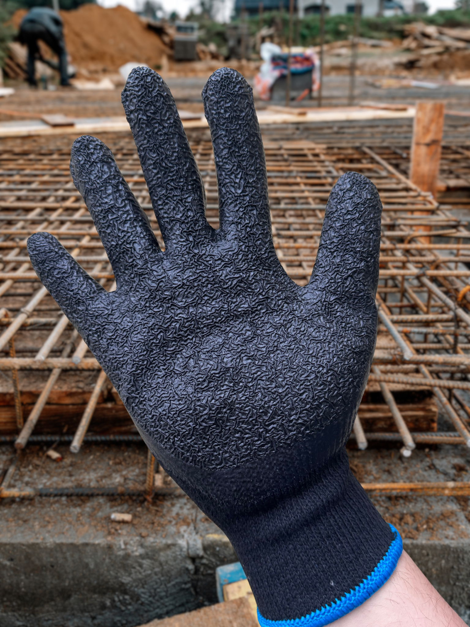 Rękawice wykonane z czarnej dzianiny bawełnianej 10G, powleczone grubą warstwą zmarszczonego lateksu. Zapewniają świetną przyczepność, oddychalność i komfort użytkowania. Idealne do prac mechanicznych i ogólnych.