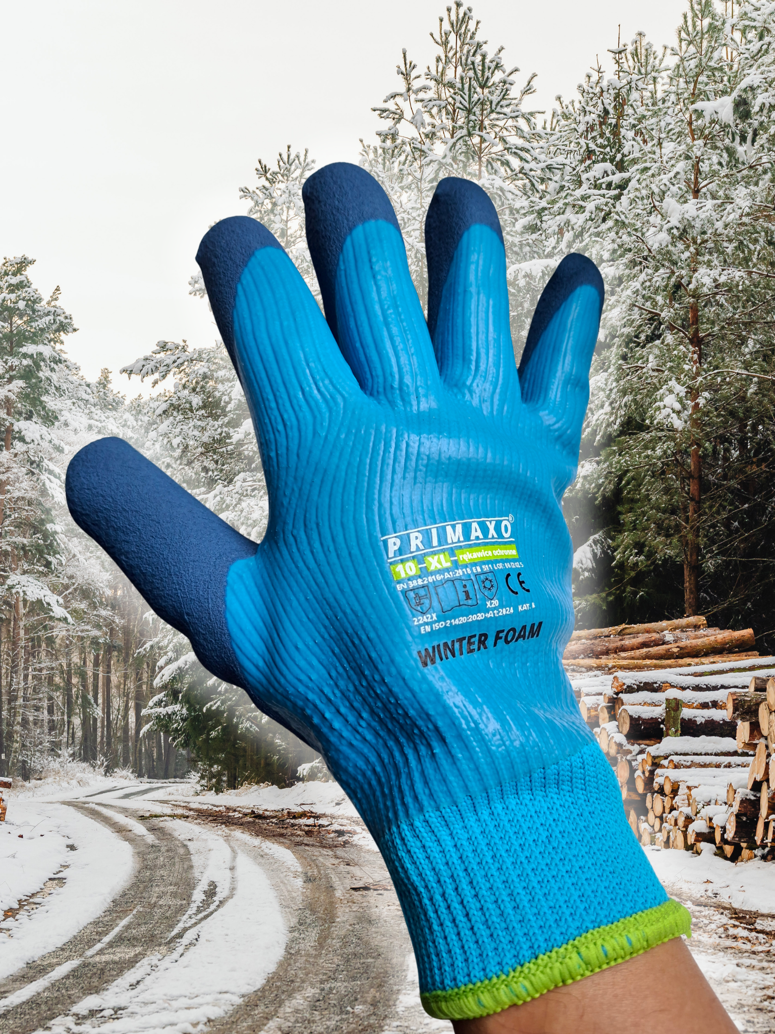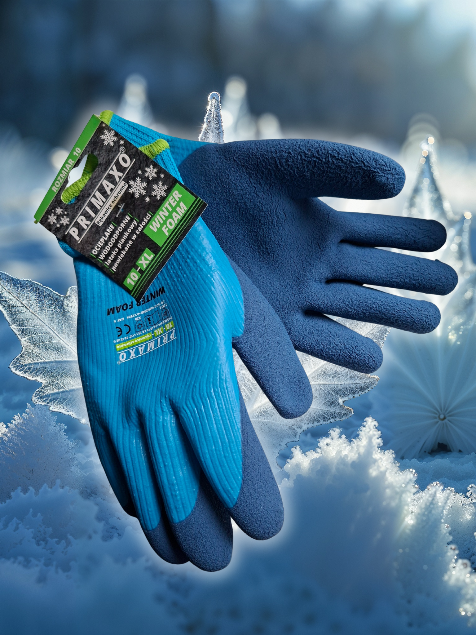 WINTER FOAM to rękawice stworzone z myślą o pracy w niskich temperaturach. Wykonane z dzianiny poliestrowej typu frotte o uigleniu 7G, zapewniają ciepło i komfort nawet podczas długotrwałych zadań na zewnątrz. Całkowite powleczenie lateksem oraz dodatkowa warstwa pianki lateksowej gwarantują wysoką odporność na ścieranie i pewny chwyt, także w wilgotnym środowisku.